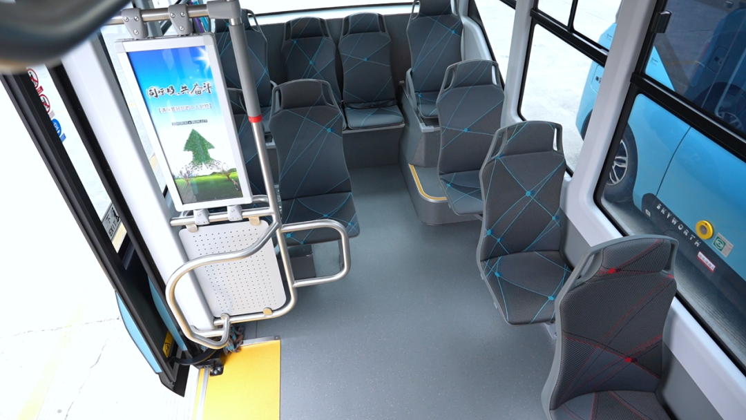创维都市精灵采用低入口设计,方便乘客快速上下车;内部空间布局优化,9+1座位,实现有限空间内最大载客效能。同时,创维都市精灵能够无缝接入公交智能调度平台,实时响应动态公交平台指令,实现“即叫即到、按需发车”的智慧运营模式。