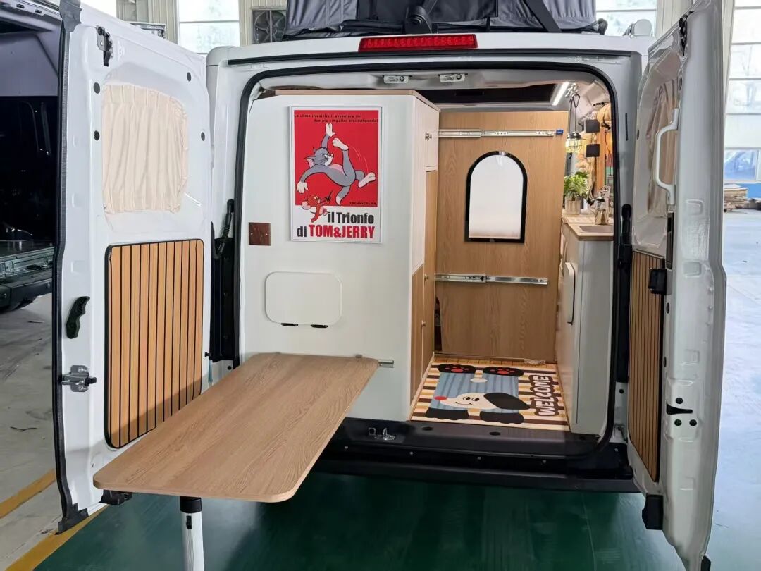 内饰空间设计兼顾实用性与舒适性,整车配备142L房车专用大容量冰箱,可长期储备生鲜食材、饮品零食,户外生活也能尽享新鲜美味;车内打造一体化餐厨区,集成吸油烟机、隐藏式洗菜盆、多功能控制区,搭配丰富储物柜与置物架,让户外生活告别杂乱,便捷有序。空间灵活性方面,车型采用一物两用的会客卡座设计,白天可作为休闲交流、办公创作、间,夜晚通过伸缩扩展即可变身舒适大床,收纳不占额外空间,兼顾休闲、住宿、储物多重功能,完美适配情侣出行、家庭旅居、好友结伴等多场景需求。