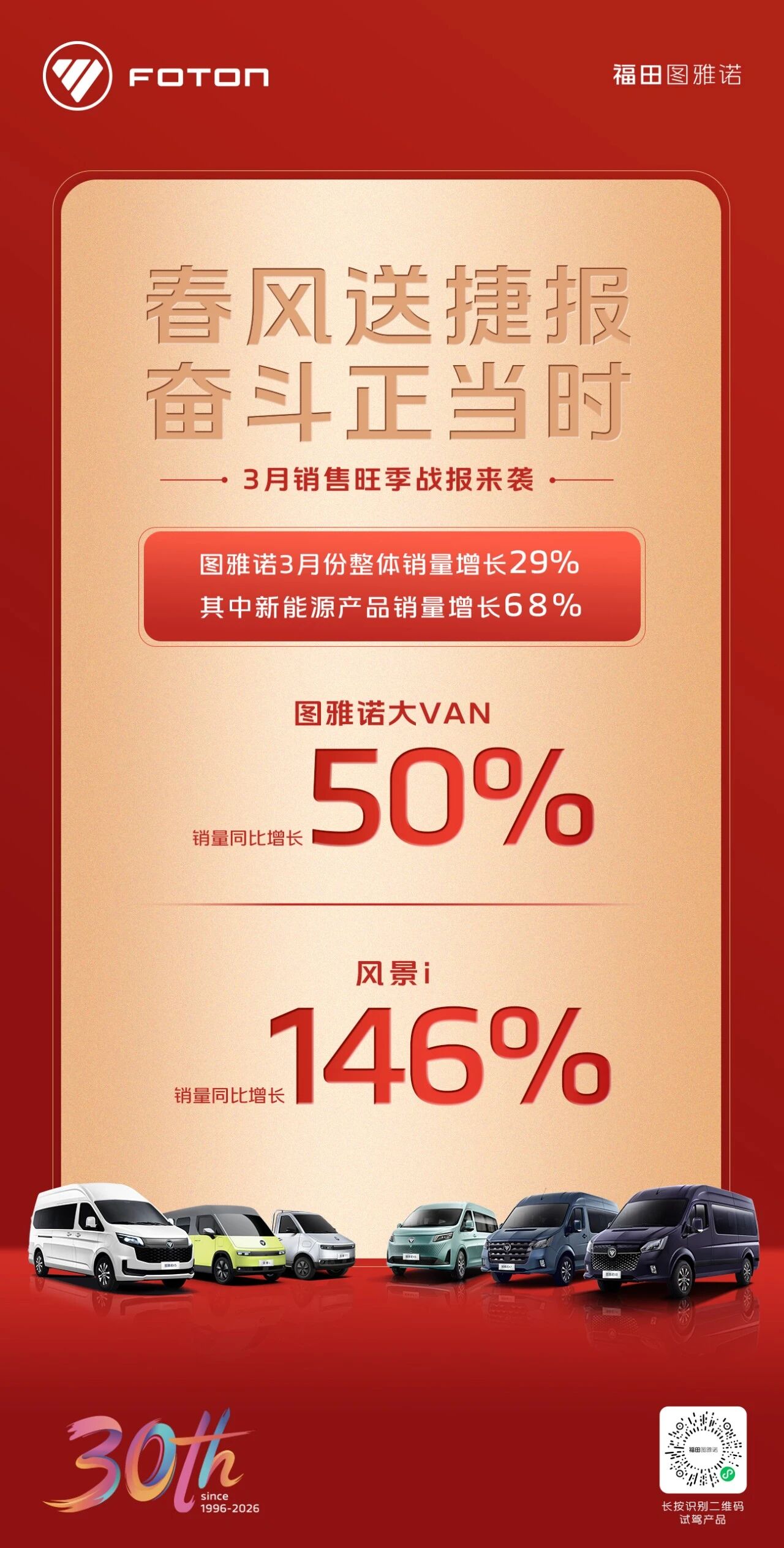 福田图雅诺3月销量狂飙!新能源暴涨68%,风景i猛增146%