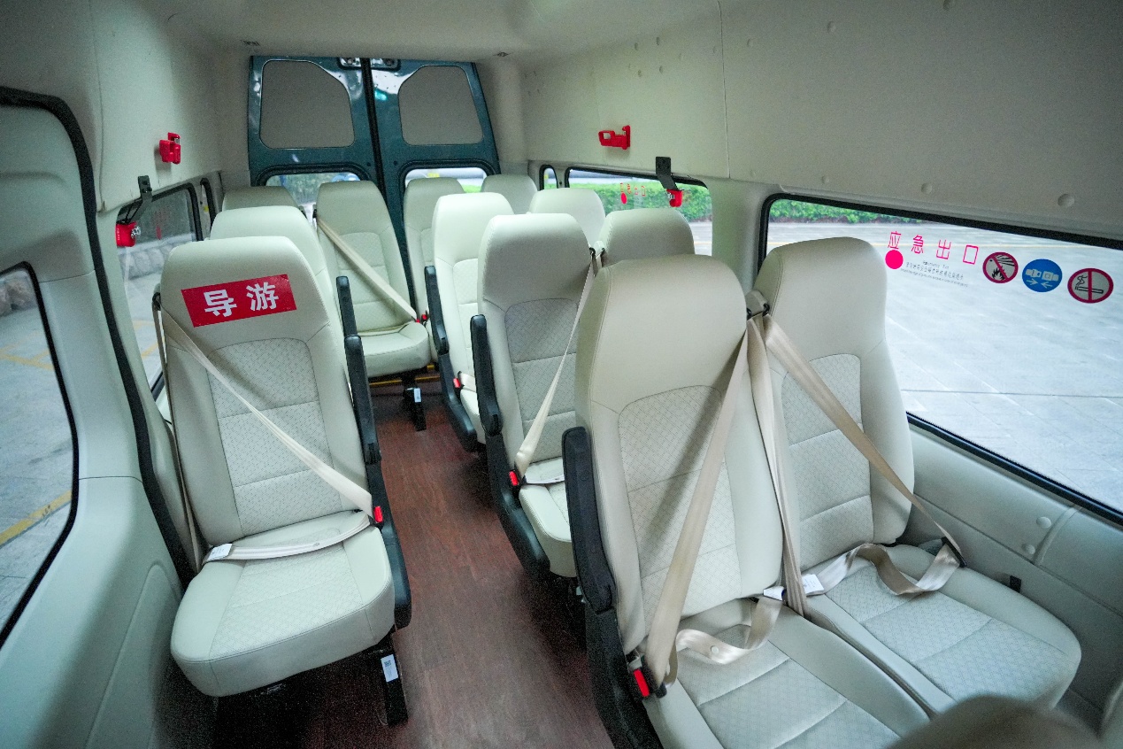 宽境空间,化解乘载焦虑。图雅诺X8专为多人团队出行量身打造7-17座独立座椅设计,本次接待使用的15座车型座椅间距及腿部空间均满足乘坐需要,即便长时间乘坐也毫无局促感。独立行李区空间足以容纳多人行李,搭配仪表台带盖储物盒等13处超大收纳空间,让各类物品各得其所。无论是国际宾客的随行行李,还是媒体团队的拍摄器材,都能轻松安置,尽显从容。