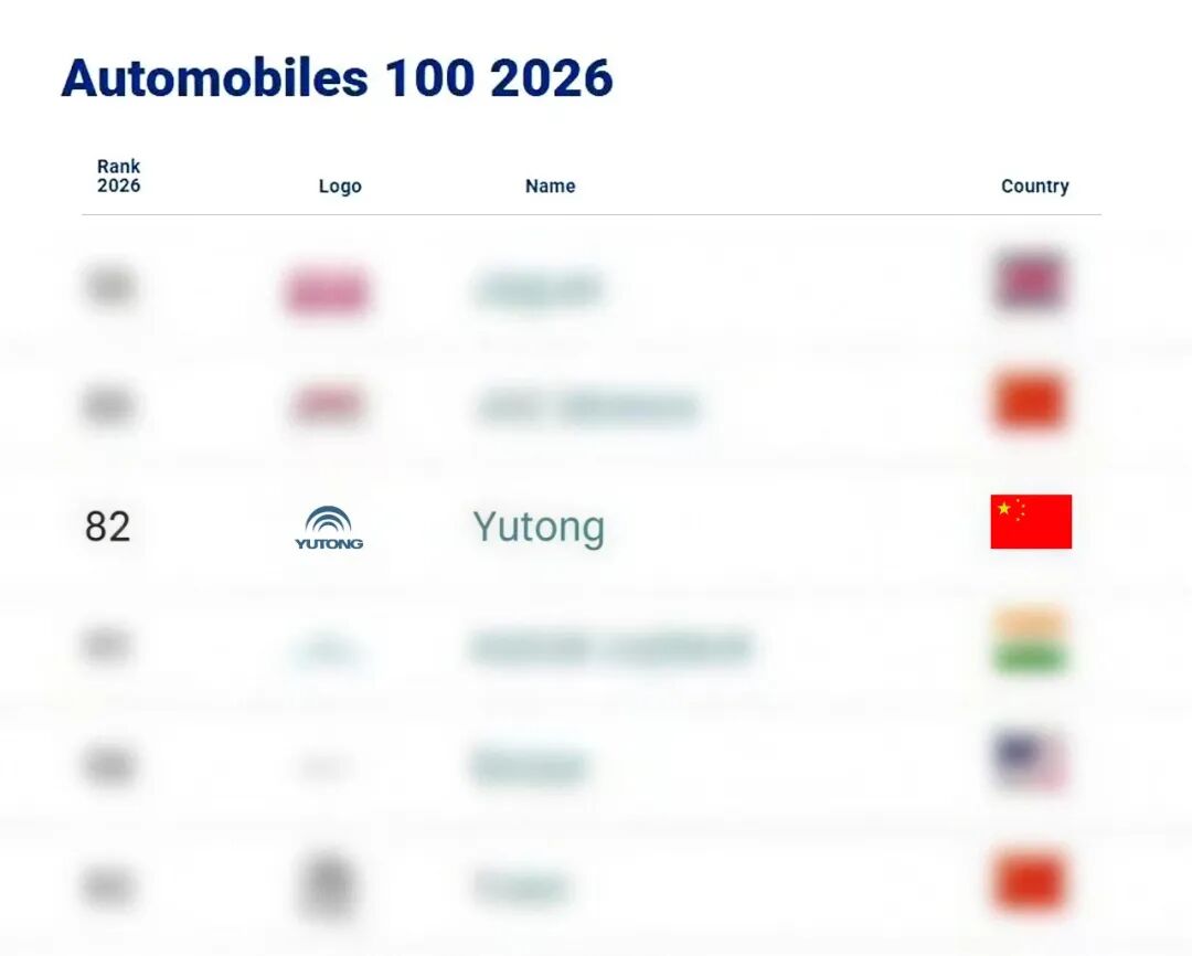 2026年4月23日,英国知名品牌估值与战略咨询机构Brand Finance正式发布《2026全球汽车品牌价值100强》榜单。宇通客车以第82名的成绩再次上榜,这也是宇通自2014年以来连续第13年登榜,展现出稳定而可持续的品牌竞争力。
