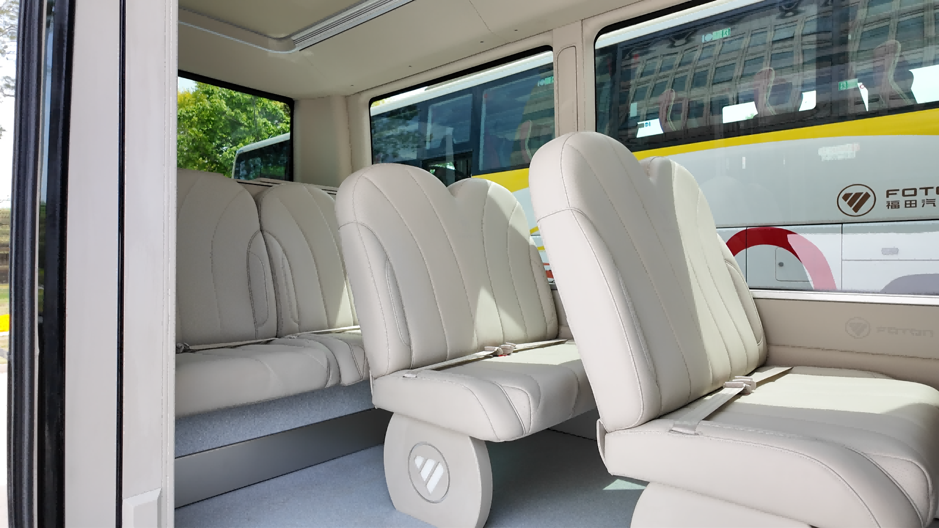 效率与场景适配能力同样突出,该车可广泛应用于景区、园区、城市微循环接驳等场景,有效解决“最后一公里”出行痛点。其中,中央集成式电驱桥省去传动轴,传动效率超97%,运行寿命超80万公里,线控转向响应迅捷精准,EBS+EPB线控制动系统可实现多工况完美制动。“四轮四角”设计最大化车内空间,封闭园区场景采用无驾驶位、无方向盘的会客厅式设计,适配接待洽谈等多元场景;公开道路场景保留驾驶位与方向盘,可正常上牌上路。