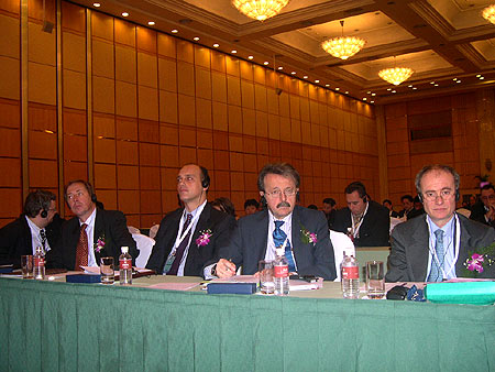 Ramos Garcia先生、中国交通部高速公路车辆司司长蔡团结先生、上海柴油机股份有限公司副总彭立新先生、郑州宇通企业集团副总经理王文彬先生、上海申沃客车有限公司市场和销售部经理Jan