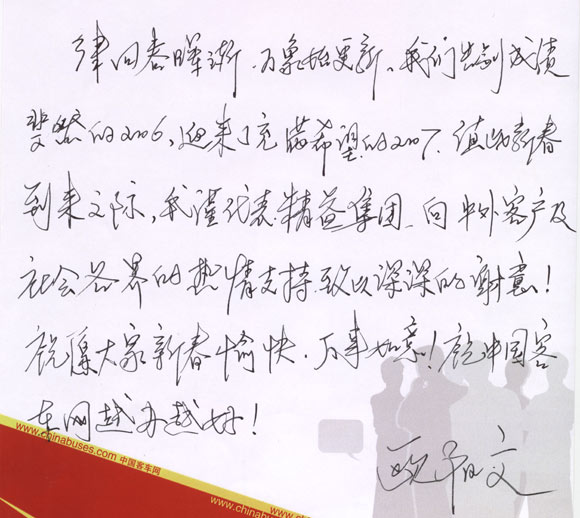 2007广州精益汽车空调有限公司总经理欧阳文 新年贺辞