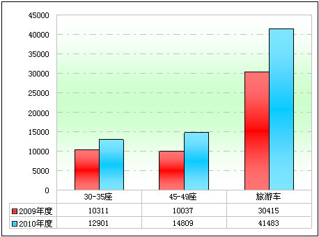 从上图表可以看出2010年度与2009年度比,旅游客车市场的发展趋势特点: