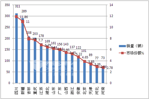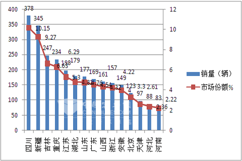 2、1-4月主流区域LNG客车销量(来自上牌数据)