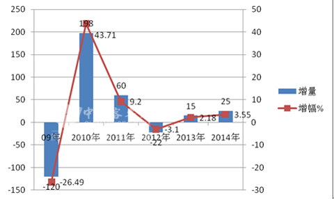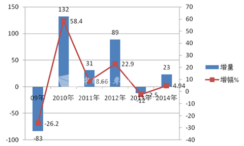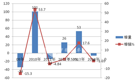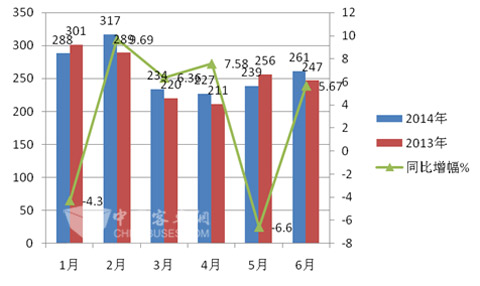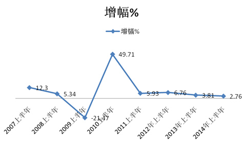 1、2014年上半年90万以上高档客车销量同比2013年增加2.76%,比2013年同期的增幅提高3.81个百分点减少近1个百分点,增幅明显收缩,市场需求不旺,增长明显乏力。