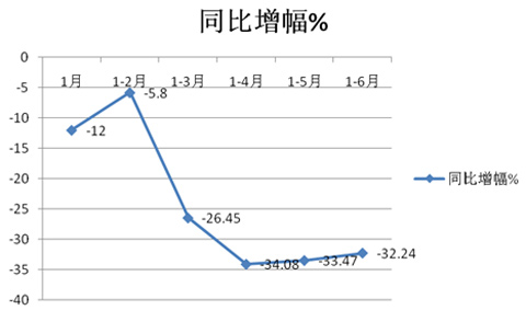 一、各月销量同比增幅均为负值,除前2月下降幅度是个位数外,其余各月下降幅度均为两位数,第二季度各月降幅均超出30%以上