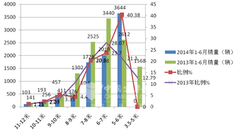 七、5-6米逐渐成为2014年上半年校车市场的主力车型