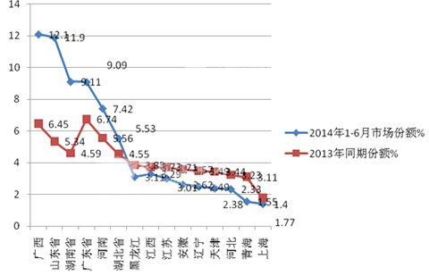 2013年同期市场份额% |