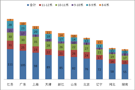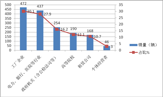 4、排在第4、5、6名的是华北最大团体客车市场的天津、浙江、山东。由此可见,在经济比较发达的区域,团体车市场可能相对就较大,这给客车企业在营销团体车市场的区域定位和营销资源的投入上提供了比较可靠的依据,同时天津区域是华北市场中最大的团体车市场,超过了首都北京的团体车市场。