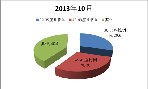 三、30-35座及45-49座是旅游客车销量的主体,市场集中度上升了近2.0个百分点,30-35座旅游客车权重提高幅度最大----按座位数划分,对2014年10月旅游客车销售数据分析