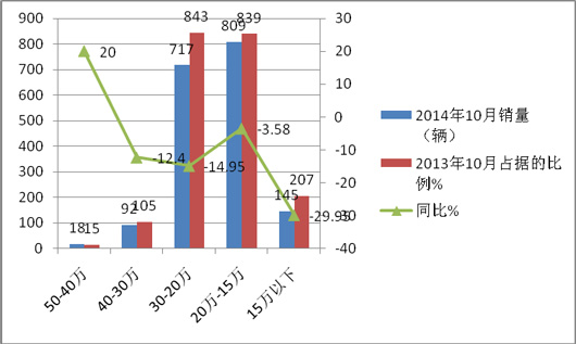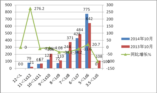 5、3.5米段在2014年10月销量为零,而2013年同期则为108台。