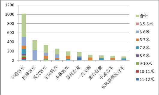 4、特大型长度段销量依然为零,说明特大型客车在校车市场依然不适合。