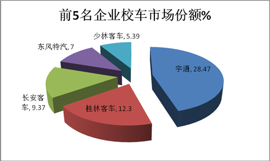 总体而言,目前国内小型校车市场已经形成了相对稳定的局面。一是传统大中型客车生产企业主动适应市场和用户的要求,将产品线下延,丰富校车种类。二是在轻客市场具有一定影响力、产品研发力和轻客生产经验的轻型商用车生产企业,开发出的同平台校车产品。三是以微型客车为基础,衍生出的专用校车,如长安和五菱,这些企业虽然在校车生产经验上比较欠缺,但因为具有较好的市场基础,并且满足了部分地区对于微型校车的强烈需求,因此具有较好的市场前景。
