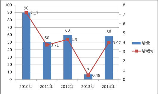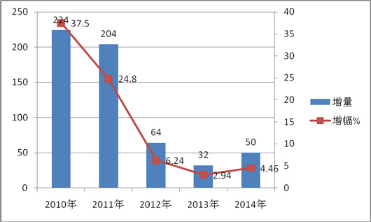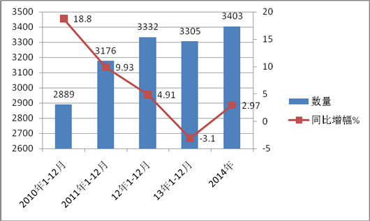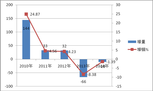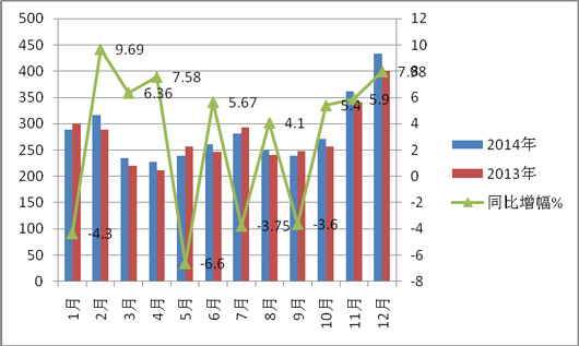 一、2014年前9月销量增幅有正有负,起伏不定,10月后各月销量增幅均为正值,全年市场呈现微弱增长态势
