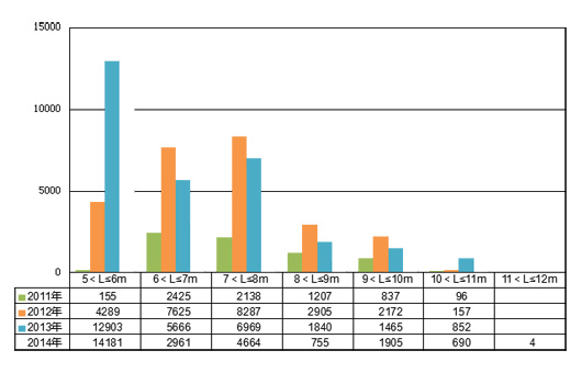 图3:2011-2014年国内5米以上校车分米段注册量对比分析图