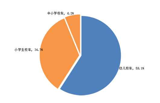 而对校车分用途分析结果显示(请见图4),目前2014年国内5米以上校车全部注册量中,幼儿校车约占59.1%,小学生校车占34.7%,而中小学生校车仅占6.2%。由此可见当前校车的主流需求来源于幼儿教育机构,其次是小学校,中学校车比较少。当然由于幼儿校车核定乘员数要多于其他类型校车,因此也不排除用幼儿校车运送小学生的可能。但从目前市场需求分析,幼儿校车是目前的校车主流需求,因此在用户选择中必须了解目前市场的用户结构,才能有效提高销售成功率。