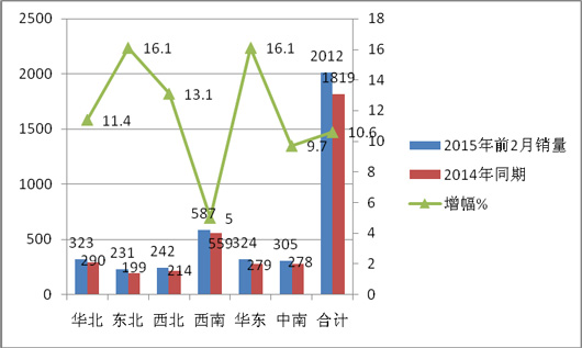 2015年前2月销量 |