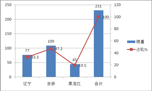 2015年1-2月东北区域各省销量及占比