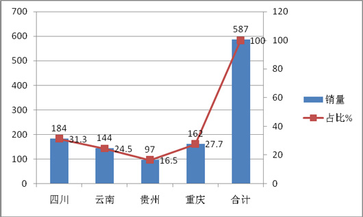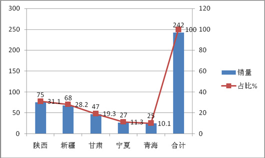 2015年1-2月华北区域各省销量及占比