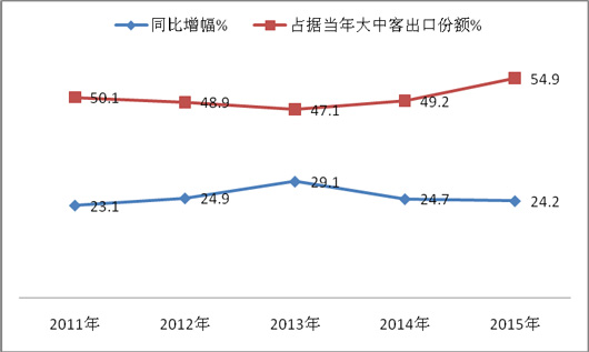 根据统计,在2015年1-2月的出口的客车中,价格在30万-90万的中高档客车占据了近54.9%的市场份额,为近5年同期最大,而增幅达到近24.2%,为次小,说明30万-90万客车是2015年前2月我国大中客车市场出口的中坚力量
