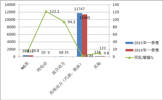 2015年1-3月按燃料类别统计旅游客车销量结构(辆),表3