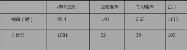2、 1-4月纯电动专用客车销量也只有30辆,占据的市场份额只有2.65%