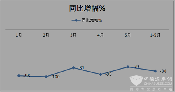 2017年1-5月各月纯电动客车市场同比增幅表: