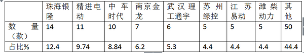 此外,广通客车、亚星客车、申龙客车、扬子江汽车、厦门金龙、厦门金旅、宇通客车、安凯客车等数十家企业有车型上榜。