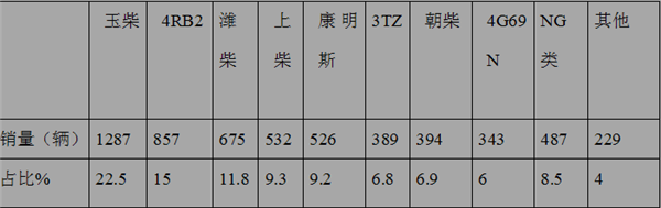 根据海关数据统计,2017年11月各类客车出口5719辆,按发动机品牌划分销量结构分析如下表: