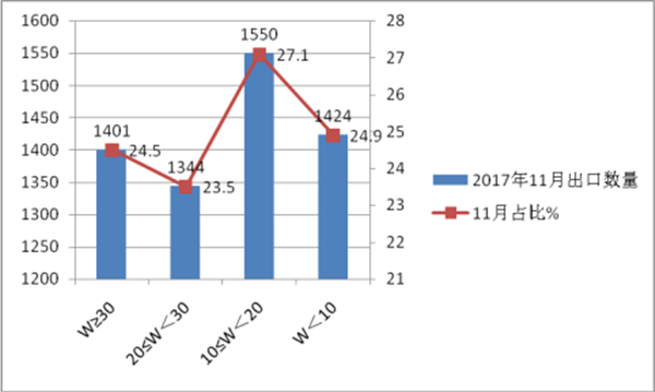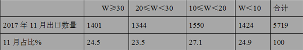 根据海关数据整理分析,2017年11月,按价格划分统计如下