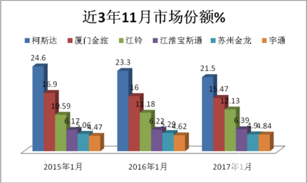 (三)、国产第一大品牌---小金龙2017年11月份考斯特销量分析: