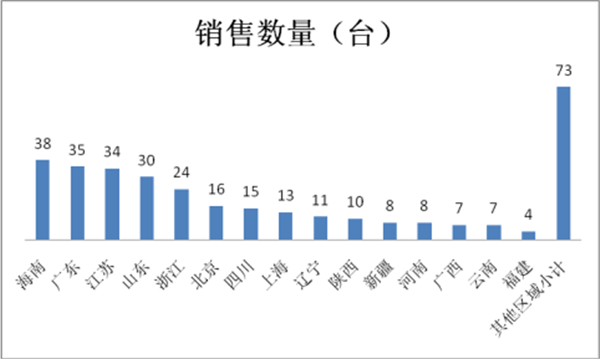 丰田考斯特2017年11月份的重点销售区域是海南、广东、江苏、山东、浙江、北京、四川、上海、辽宁、陕西、新疆等区域市场,海南居于第一,不愧为全国国际旅游岛。同时也说明了上述区域市场是高端考斯特客车需求的重点区域市场,这给国内生产制造考斯特的客车企业在市场营销策略制定和重点资源投放上提供了一定的启示。