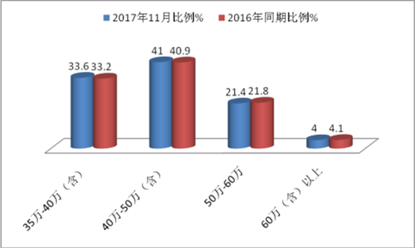 2、按价格划分,对柯斯达2017年11月销量结构分析: