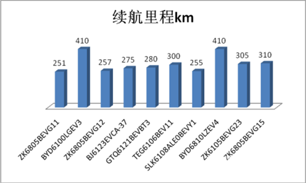 3、纯电动客车的续航里程在251-410km之间,系统能量密度在68.22-136.05wh/kg之间。从数据来说,足以满足用户的需求。