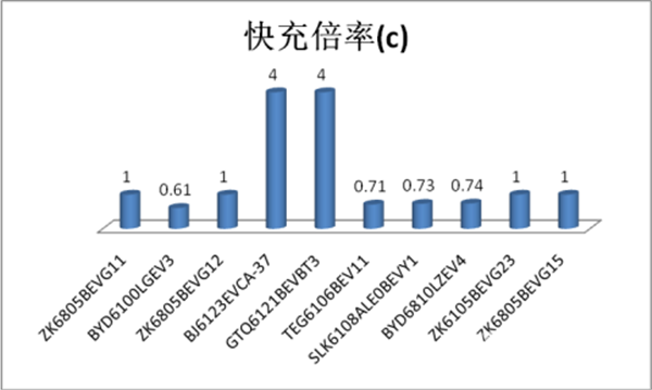 4、从快充倍率来看,纯电动客车在排名前十的车型中,有两款车型是快充纯电动客车,配套的动力电池是钛酸锂电池,生产的电池企业是珠海银隆。