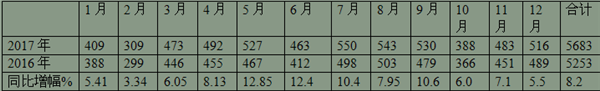 根据最新数据统计分析,2017年1-12月,价格在90万以上的高档客车销售共计5683辆,比2016年同期的5253辆多430辆,增幅为8.2%,相应去年同期14.2%的增幅收窄了6个百分点。如同客车整体市场一样,受到了多方面因素的影响,但在各个价格细分区间却又呈现了不同的特点(后面详细分析),在1-12月每个月份的销售增幅也不尽相同,具体如下表(表1)
