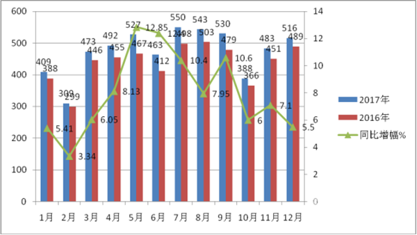 1、2017年1-12月90万以上高档客车销量同比2015年增长8.2%,增幅同比收窄6个百分点。