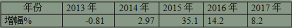 近5年90万以上高档客车增幅统计(表2)