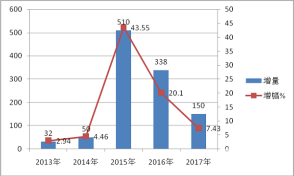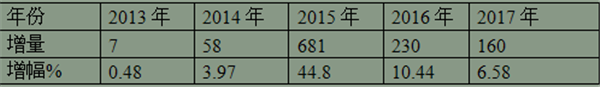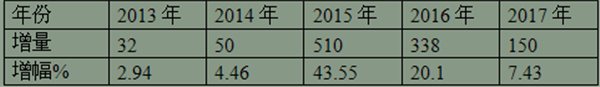 2) 2013年1-12月到2017年1-12月,对价格在150-200万的销售情况分析,表5 近5年1-12月价格在150-200万区间客车销量增长和增幅情况: