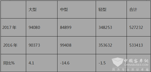 特点一、在近三年的客车销量比较中,2017是市场相对最为低迷的年份