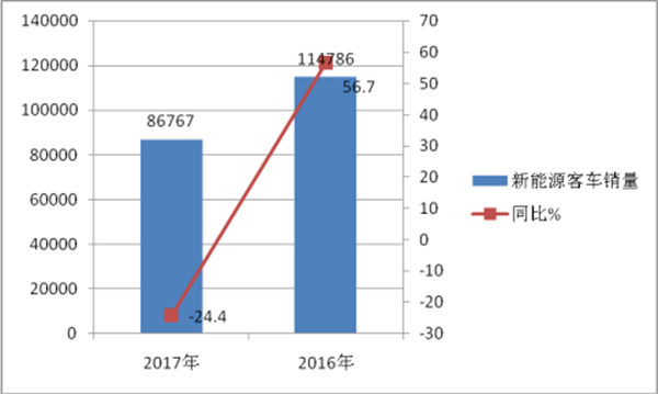 要说对2017年客车市场影响最大的特点,莫过于新能源汽车补贴的退坡和3万公里的要求,对2017年新能源客车市场影响是巨大的,可以认为2017年是新能源客车市场的“调整年”和“阵痛年,2017年或许是近年新能源客车市场具有里程碑意义的“分水岭”。2017年补贴大幅退坡,补贴推荐目录推倒重审,再加上“3万公里”的追溯要求,使2017年的新能源客车市场(尤其是上半年)遭遇了不小的打击。统计数据显示,2017年全年,国内销售新能源客车86767辆,同比2016年的114786辆,同比下降24.4%。