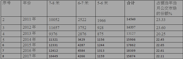 2017年5-8米城乡公交市场特点总结
