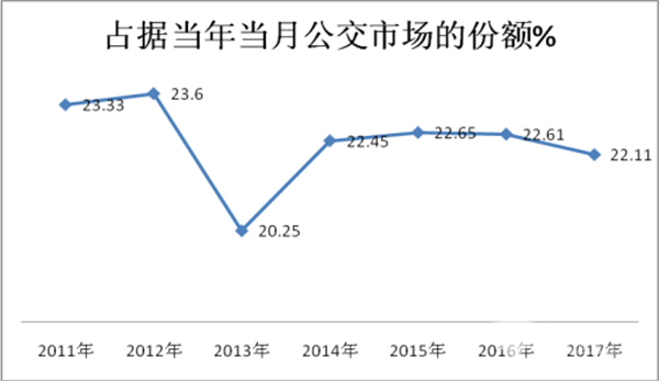 特点一、销量同比下降,占据公交市场的权重同比下降