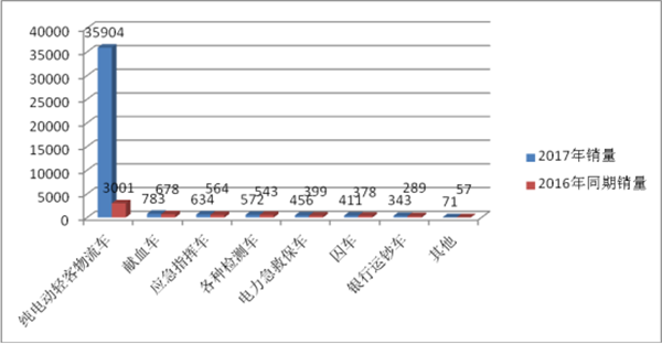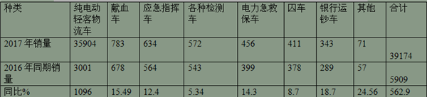 3、2017年献血车、应急指挥车等客车专用车销量较少,相对几万辆级别的纯电动物流车车简直就是“小儿科”。
