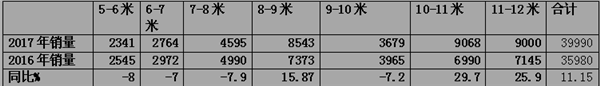 2、 在2017年整个客车市场处于相对低迷的大环境中,旅游客车市场是处于活跃的细分市场。