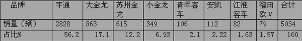 5、福田客车、安凯客车、江淮客车等其他品牌的旅游客车相对三龙一通销量较弱,但相对客车行业还是较强,如福田在东北市场团体车销售尚可,安凯江淮在本地安徽团体车销售不错。