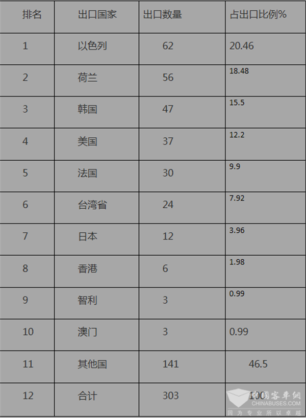 3、在插电式混合动力客车领域,2017年中国出口美国为零。