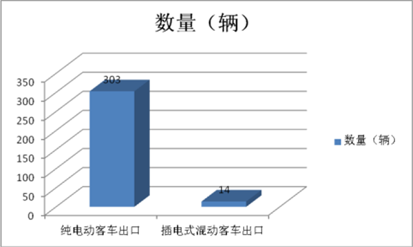 在2017年出口的317辆新能源客车中,纯电动客车出口303辆,插电式混合动力客车为14辆。纯电动出口占据新能源客车出口95.58%的权重,插电式混合动力客车只有4.42%的权重,几乎可以忽略。